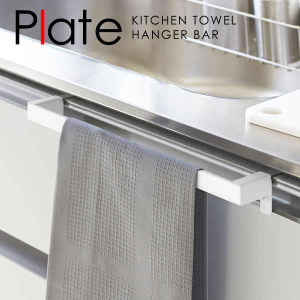 タオルハンガー キッチン タオルバー キッチンタオルハンガーバー ワイド プレート ホワイト (Plate) [山崎実業] ふきん掛け 吊り戸棚 タオル掛け おしゃれ 洗面所 トイレふきん掛け タオルかけ 北欧 YAMAZAKI 【e暮らしR】【ポイント10倍】