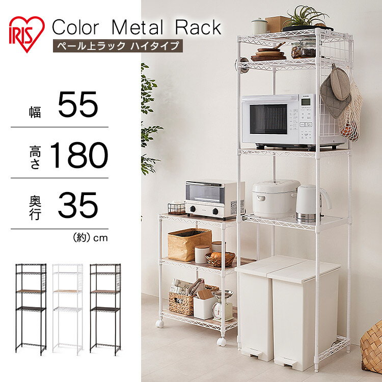 ●商品サイズ(cm)幅約55×奥行約35×高さ約180(アジャスター含む)●ポール直径19mm仕様●耐荷重棚板:約50kgスライド棚板:約5kg全体:約100kg●主要材質棚板・ポール・コの字バー・メッシュパネル・コネクター・S字フック:スチール(粉体塗装)スライド棚板:スチール、スチール(粉体塗装)ウッドボード:合成樹脂化粧繊維板(PVC)クリアシート:PVC棚板固定部品:ASB樹脂アジャスター:スチール、ナイロン樹脂※耐荷重は測定値であり、保証値ではありません。