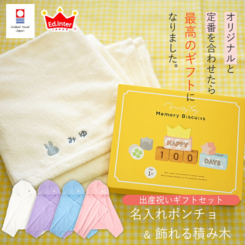 かわいいラッピングとメッセージカードで彩りを添え、私たちGIFTON マルハートが、みなさんの想いを届けるお手伝いをいたします!ミッフィー × 今治タオル バスポンチョ 【名入れ無料】 & エドインター Memory Biscuits -メモリービスケット- 出産祝いに定番の積み木と、オリジナルギフトの名入れポンチョで 最高のギフトセットに! 店長”マルメ”が語る、全ての条件を満たした安心・納得の出産祝いギフト 毎度ありがとうございます。